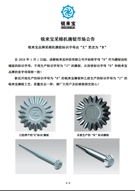 锐来宝摘锭产品标识字母更改市场公告